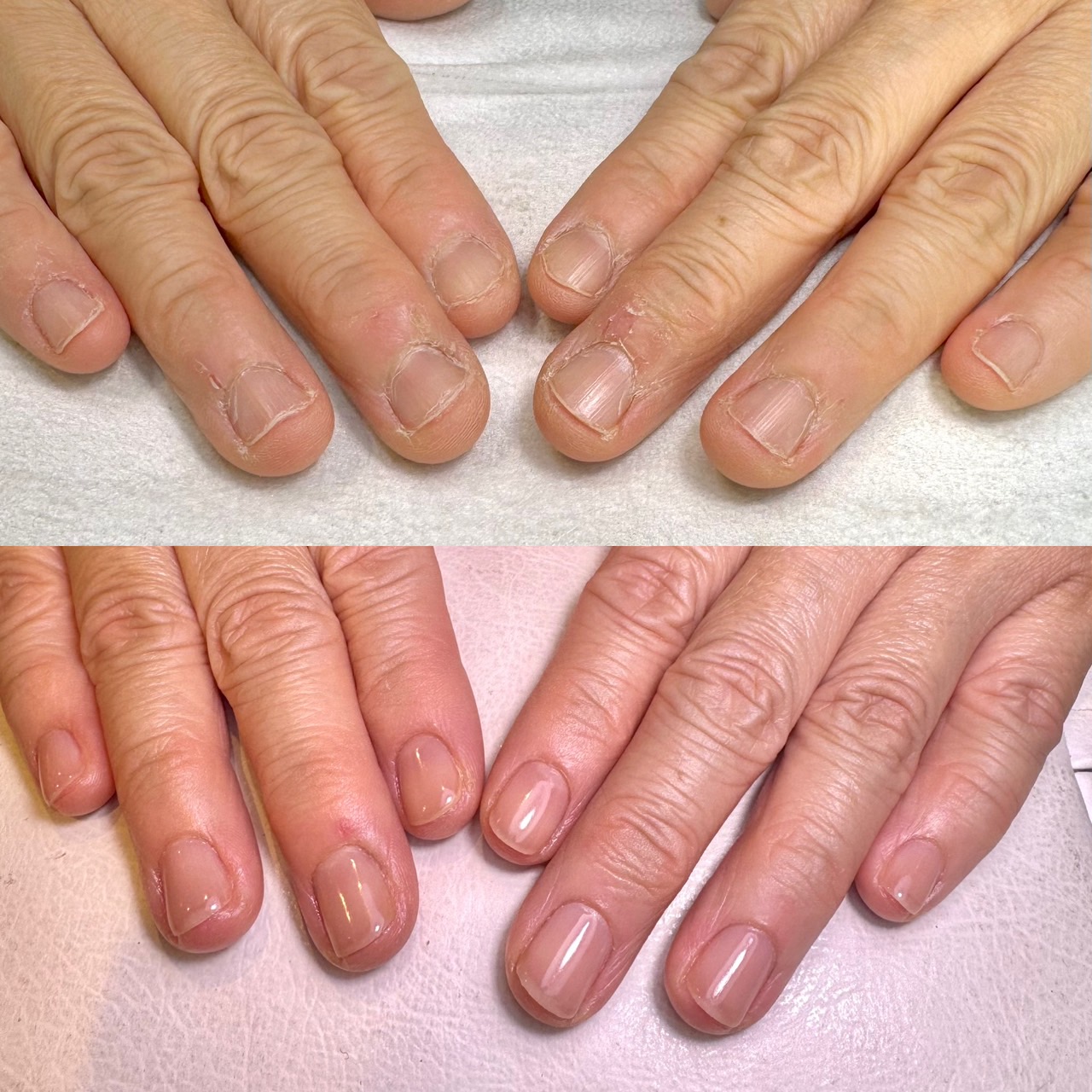 2ヶ月4回の来店での手元の変化をご覧ください。